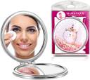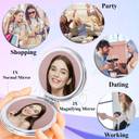 Majestique compact mirror is made of excellent material with durable plating layer, which makes the compact mirror more wear-resistant and durable and has a longer service life. Distortion-free glass produces undistorted reflections, so you can see the tiniest beauty details. High-quality, quality Durable Metal Edge last long time and don't rust. The small, compact mirror comes with 1 normal HD mirror and 1 magnifying HD mirror. The normal HD mirror provides you with a clear true image, and the magnifying HD mirror assists you for applying makeup or a close-up eyebrow, blackhead and tweeting and seeing the tiniest details. Makeup becomes faster and easier. Great for putting in contacts, popping pimples, flossing, removing blackheads, applying eyeliner, mascara, grooming brows, and tweeting. It can be easily put into pockets, handbags, backpacks, women's long wallets, women's totes, makeup bags, etc.