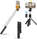 MAK Bluetooth Selfie Stick (67 inch Long, Rechargeable LED Light for Vlogging, PhotoShoot, Black, Remote Included)