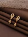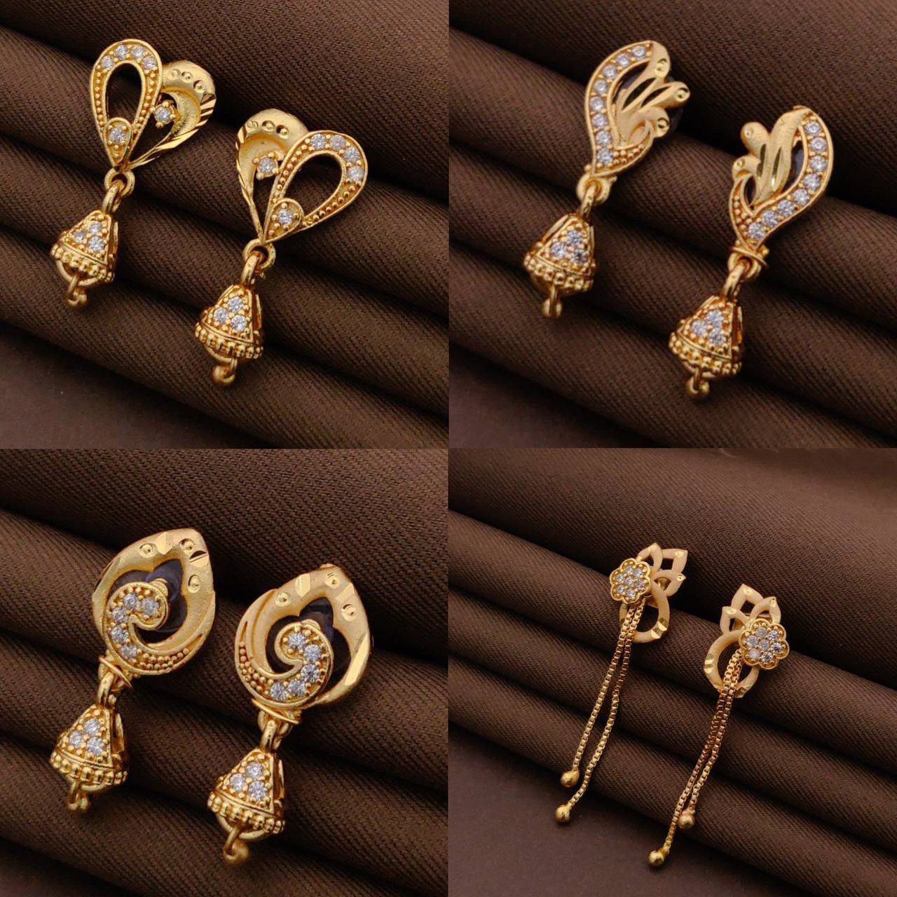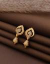 Design: Intricate filigree work on the studs paired with a classic bell-shaped Jhumka drop.
