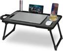 VRTREND Multipurpose Foldable with Cup Holder, Study , Bed Wood Portable Laptop Table (Finish Color - BLACK, Pre Assembled)