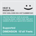 Heat & Radiation - Stay cool even on a hot summer day. Use this reflective cloth to provide a relaxing shade, deflect heat, light and radiation while you spend time outdoors.