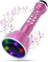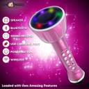 Make Ur Wish Superier Quality With LED Wireless Bluetooth Microphone Connection Player Speaker 2-in1 With Recording + USB+FM Microphone (Pink)