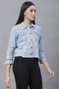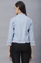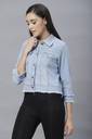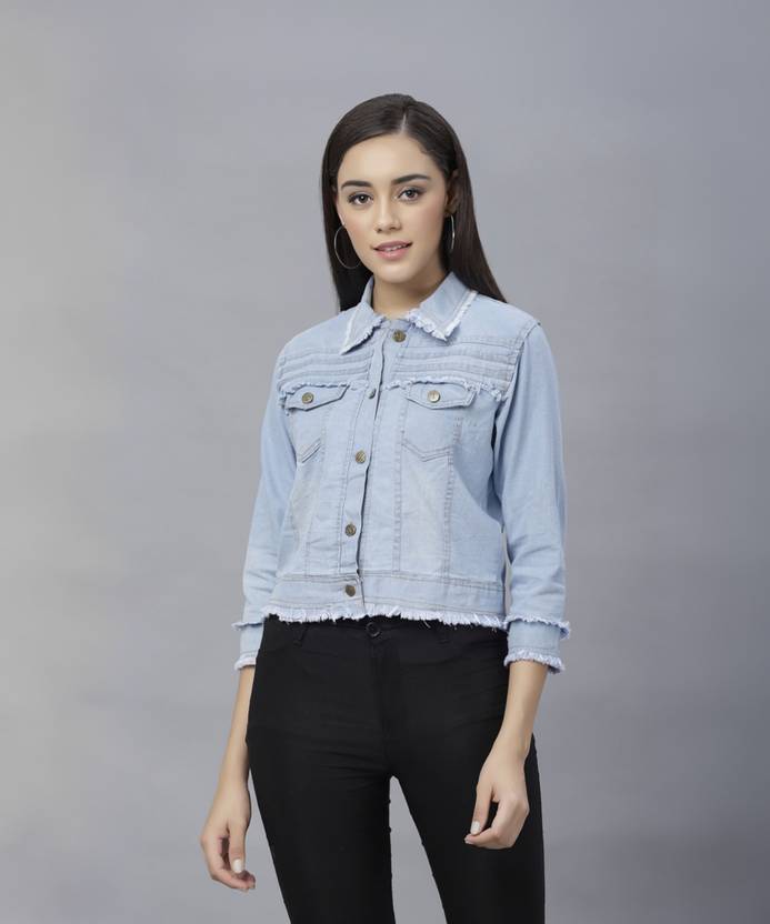 Solid Denim Jacket, has a spread collar, 2 pockets, button closure, long sleeves, straight hem, and unlined lining. Fabric Composition – 100% Cotton Denim. Original Trucker Jacket Pattern. Due to the inherent nature of Indigo/Sulphur dyed fabrics, the surface color may bleed or rub off onto lighter surfaces.