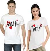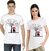 Printed good quality Couple T-Shirt with POLY COTTON fabric by Makhkha. It is a set of two T-Shirts. One for men and one for women. The Printed Round Neck half sleeve T-Shirts lend both comfort and durability and its unique design will surely make you stand in the crowd. Revamp your style with this awesome collection of POLY COTTON T-shirts from makhkha - Wear your Choice. This T-Shirt is made of POLY cotton fabric and keeps you comfortable at all temperatures. Pair it with Denims or Casuals for a prefect Casual makeover.