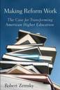 Making Reform Work is a practical narrative of ideas that begins by describing who is saying what about American higher education, who's angry, who's disappointed, and why. Most of the pleas for changing American colleges and universities that originate outside the academy are lamentations on a small number of too often repeated themes. The critique from within the academy focuses on issues principally involving money and the power of the market to change colleges and universities. Sandwiched between these perspectives is a public that still has faith in an enterprise that it really doesn't understand. Robert Zemsky, one of a select group of scholars who participated in Secretary of Education Margaret Spellings' 2005 Commission on the Future of Higher Education, signed off on the commission's report with reluctance. In Making Reform Work he presents the ideas he believes should have come from that group to forge a practical agenda for change. Zemsky argues that improving higher education will require enlisting faculty leadership, on the one hand, and, on the other, a strategy for changing the higher education system writ large. Directing his attention from what can't be done to what can be done, Zemsky provides numerous suggestions. These include a renewed effort to help students' performance in high schools and a stronger focus on the science of active learning, not just teaching methods. He concludes by suggesting a series of dislodging events, for example, making a three-year baccalaureate the standard undergraduate degree, congressional rethinking of student aid in the wake of the loan scandal, and a change in the rules governing endowments that could break the gridlock that today holds higher education reform captive. Making Reform Work offers three rules for successful college and university transformation: don't vilify, don't play games, and come to the table with a well-thought-out strategy rather than a sharply worded lamentation.