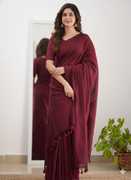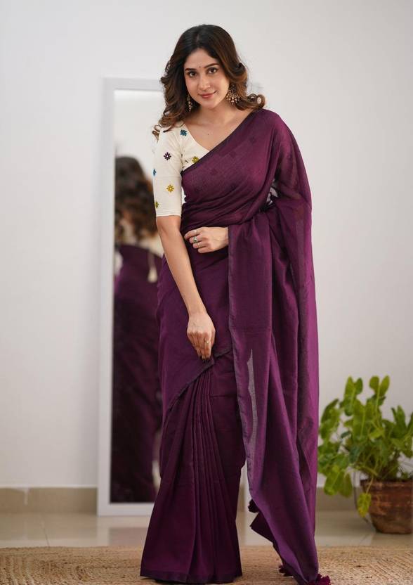 Maku Solid/Plain Handloom Pure Cotton Saree (Purple)