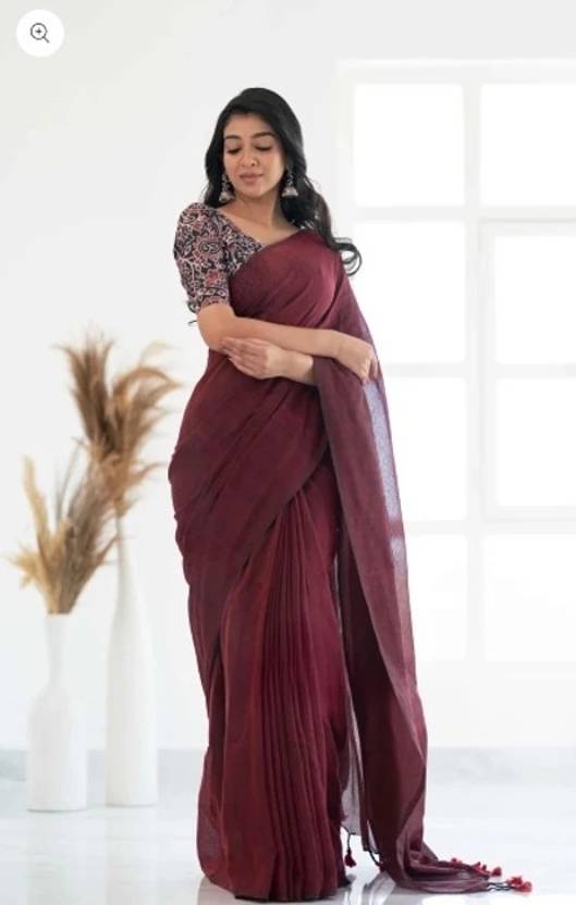Solid/Plain Handloom Pure Cotton Saree (Maroon)