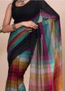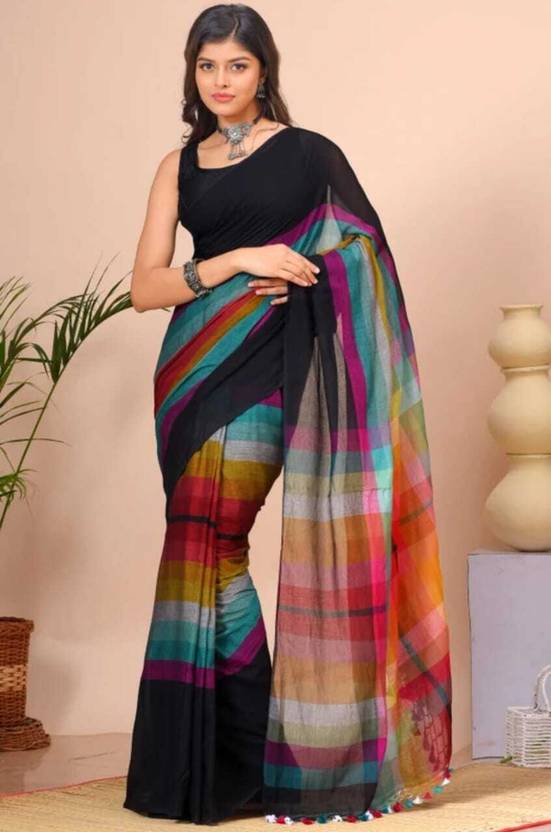 Maku Striped Handloom Pure Cotton Saree (Black)