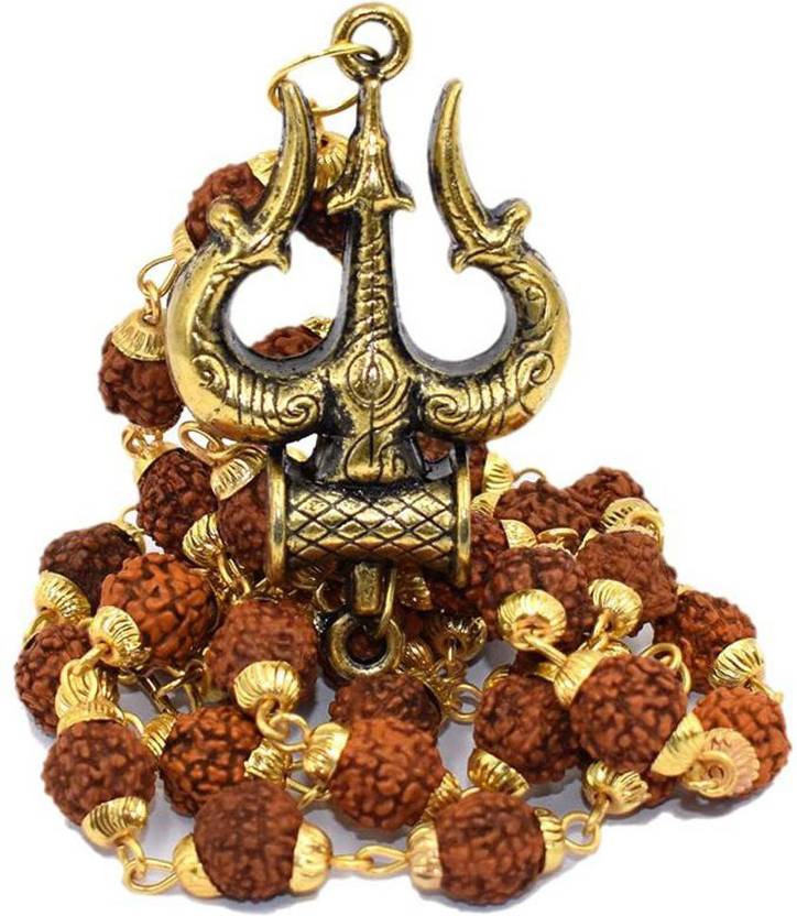 Jewellery Men's and Women's Agate Golden Gold-Plated Brass, Wood Lord Shiv Trishul Locket with Panchmukhi Rudraksha Mala