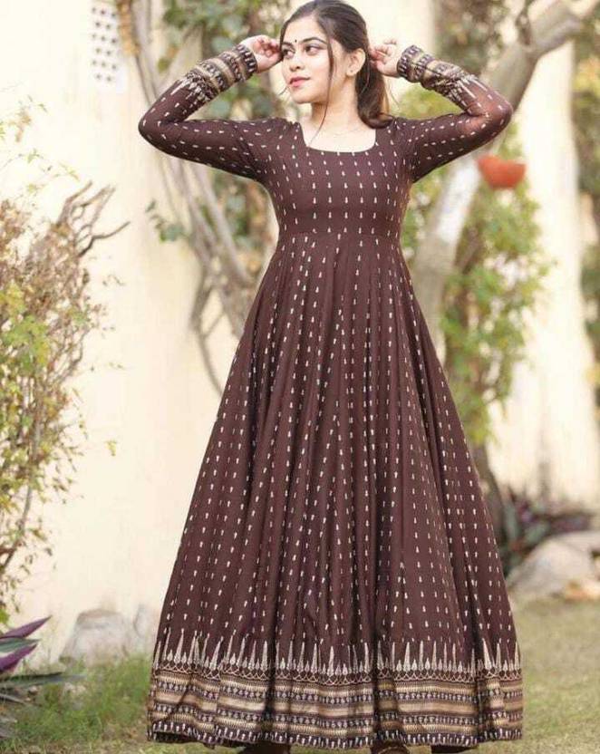 Women Printed Cotton Blend Anarkali Kurta (Multicolor)