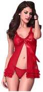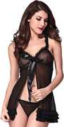 Babydoll lingerie for women. This babydoll lingerie has adjustable straps , V neck sleepwear with lace patchwork design on front. Babydoll nightwear comes with g string / panty. Enhance your charm with this slim fit babydoll lingerie. This is a FREE SIZE babydoll lingerie will fit sizes : Bust (28 to 34 inch) , Waist ( 28 to 34 inch)