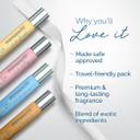 This perfume set is dermatologically tested and Made Safe Approved, which makes it perfectly safe to use on skin! The added convenience of the atomizer spray ensures better fragrance diffusion, enhancing your experience, every day!