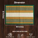 Bring calm, clutter-free beauty to your table—every day. Our Madurkathi placemats are handwoven from natural river grass, creating a gentle, grippy texture that softens clatter, cushions plates, and helps guard your table from heat and scratches. The clean black finish with cloth piping instantly tidies up any setup, from quick breakfasts to weekend dinners with guests. Because these are artisan-made, no two pieces are exactly alike. You’re not just buying placemats—you’re bringing home craft, culture, and a story that starts conversations. Cleanup is simple: wipe, air-dry, done. No plastic smell. No fuss. Just relaxed, beautiful dining you’ll love using every day. Care & Use: Wipe with damp cloth; air/sun-dry fully before storing. Avoid soaking and machine wash. Keep away from open flame and long exposure to moisture. Handmade Note: Natural variations are normal and part of the charm. In the Box: Placemats only; runner not included.