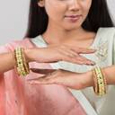 Mamon Creations offers a great range of Indian bangle for todays woman with the latest designs. The brand is committed to providing its customers with the highest quality of goods and newest designs. It is suited for a woman & girls who is looking to stay dated with the latest trends. This perfect set will enhance your look wherever you go & give you a royal feel. This perfect set will enhance your look wherever you go & give you a royal feel. Care instructions: Keep bangle away from direct heat, water, perfumes, deodorants and other strong chemicals as they may react with the metal or plating.