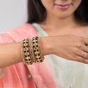 Mamon Creations offers a great range of Indian bangle for todays woman with the latest designs. The brand is committed to providing its customers with the highest quality of goods and newest designs. It is suited for a woman & girls who is looking to stay dated with the latest trends. This perfect set will enhance your look wherever you go & give you a royal feel. This perfect set will enhance your look wherever you go & give you a royal feel. Care instructions: Keep bangle away from direct heat, water, perfumes, deodorants and other strong chemicals as they may react with the metal or plating.