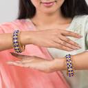 Mamon Creations offers a great range of Indian bangle for todays woman with the latest designs. The brand is committed to providing its customers with the highest quality of goods and newest designs. It is suited for a woman & girls who is looking to stay dated with the latest trends. This perfect set will enhance your look wherever you go & give you a royal feel. This perfect set will enhance your look wherever you go & give you a royal feel. Care instructions: Keep bangle away from direct heat, water, perfumes, deodorants and other strong chemicals as they may react with the metal or plating.