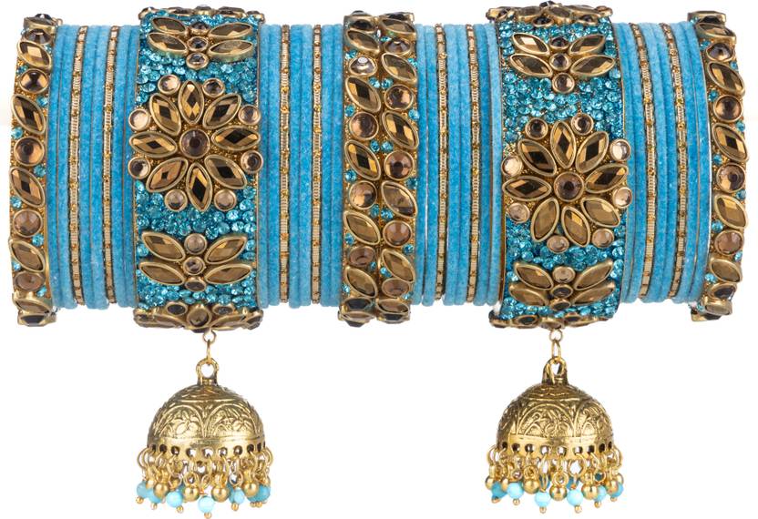 Alloy Gold Plated Metal Velvet Bangle set for Women & Girls, Latkan Bangles, Bridal Bangle Set for Wedding