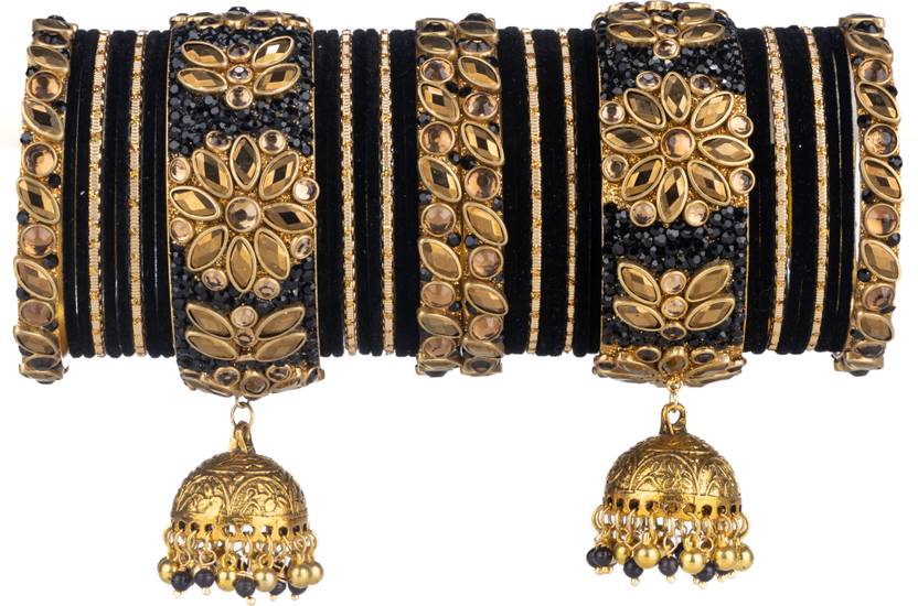 Alloy Gold Plated Metal Velvet Bangle set for Women & Girls, Latkan Bangles, Bridal Bangle Set for Wedding