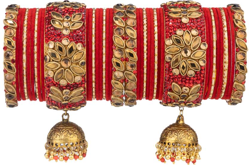 Alloy Gold Plated Metal Velvet Bangle set for Women & Girls, Latkan Bangles, Bridal Bangle Set for Wedding