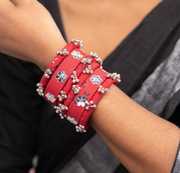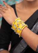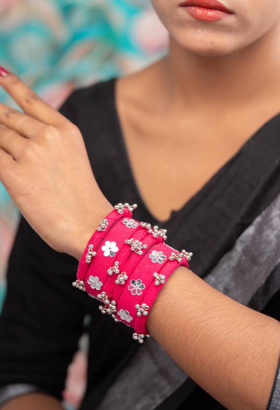 This Handmade Fabric Bangles Set for Women and Girls is the perfect accessory to add a pop of color and charm to any outfit. Made with love and care, each bangle is crafted from high-quality fabric, featuring unique patterns and vibrant hues that make them stand out. They’re lightweight and comfortable, designed to fit a variety of wrist sizes. Whether you're dressing up for a special occasion or adding a fun touch to your everyday look, these bangles are the perfect choice. A great gift for any woman or girl, this set adds a beautiful, handmade touch to any collection of jewelry.