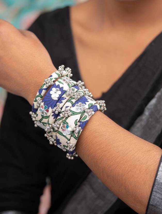 This Handmade Fabric Bangles Set for Women and Girls is the perfect accessory to add a pop of color and charm to any outfit. Made with love and care, each bangle is crafted from high-quality fabric, featuring unique patterns and vibrant hues that make them stand out. They’re lightweight and comfortable, designed to fit a variety of wrist sizes. Whether you're dressing up for a special occasion or adding a fun touch to your everyday look, these bangles are the perfect choice. A great gift for any woman or girl, this set adds a beautiful, handmade touch to any collection of jewelry.