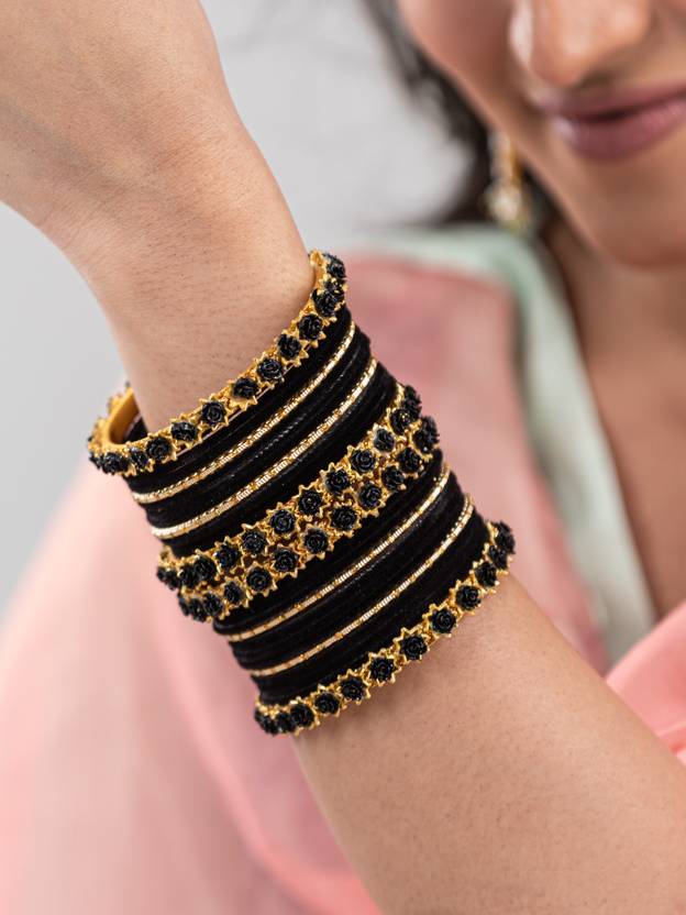 Metal and Velvet Bangle set with Beautiful Fashion Bangles for Women & Girls