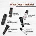 The Man Company Kit Includes: Charcoal Face Wash, Charcoal Face Scrub, Skin Brightening Cream, Vitamin C Face Serum, Onion Hair Oil & Bold Gas Deo.