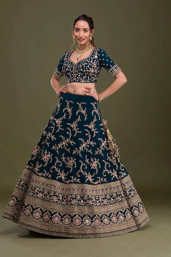 Courtesy of its semi-stitched design, this set offers flexibility and convenience. Designed with a U Type neckline and half sleeves, its blouse complements this lehenga beautifully. This set includes a lehenga, a dupatta, and a blouse, all in free size, ensuring a comfortable, flattering fit for various body types. Moreover, the semi-stitched design of this set ensures that you can customise it to your preference without any hassle. So, whether it is the flattering U Type neckline or the airy half sleeves, every detail is crafted with your comfort in mind, allowing you to dance the night away without any constraints.