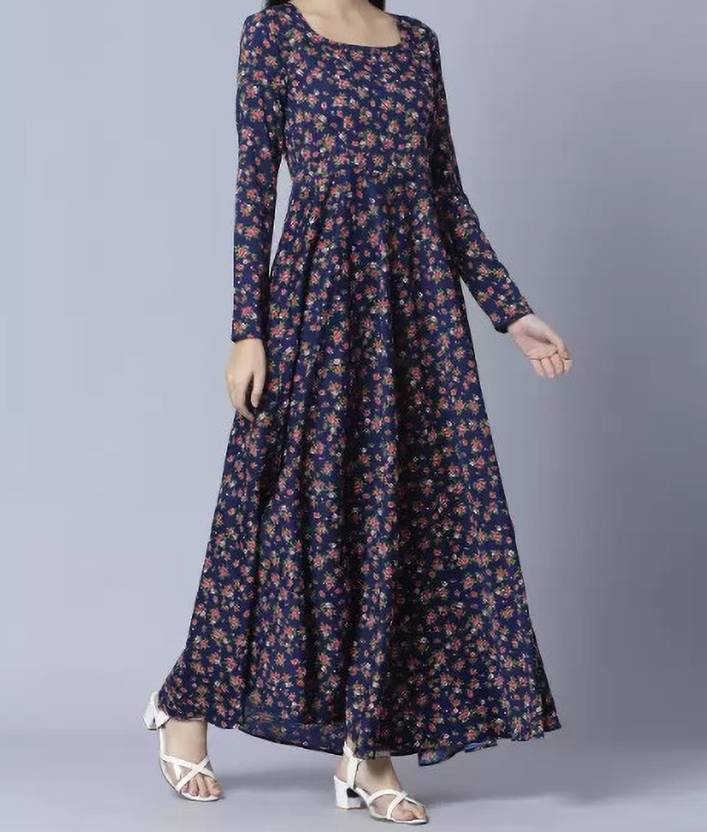 Women Polka Print Cotton Blend A-line Kurta (Blue)