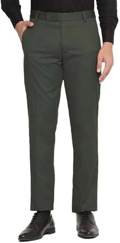 Rinkidevi Men Slim Fit Green Cotton Blend Trousers