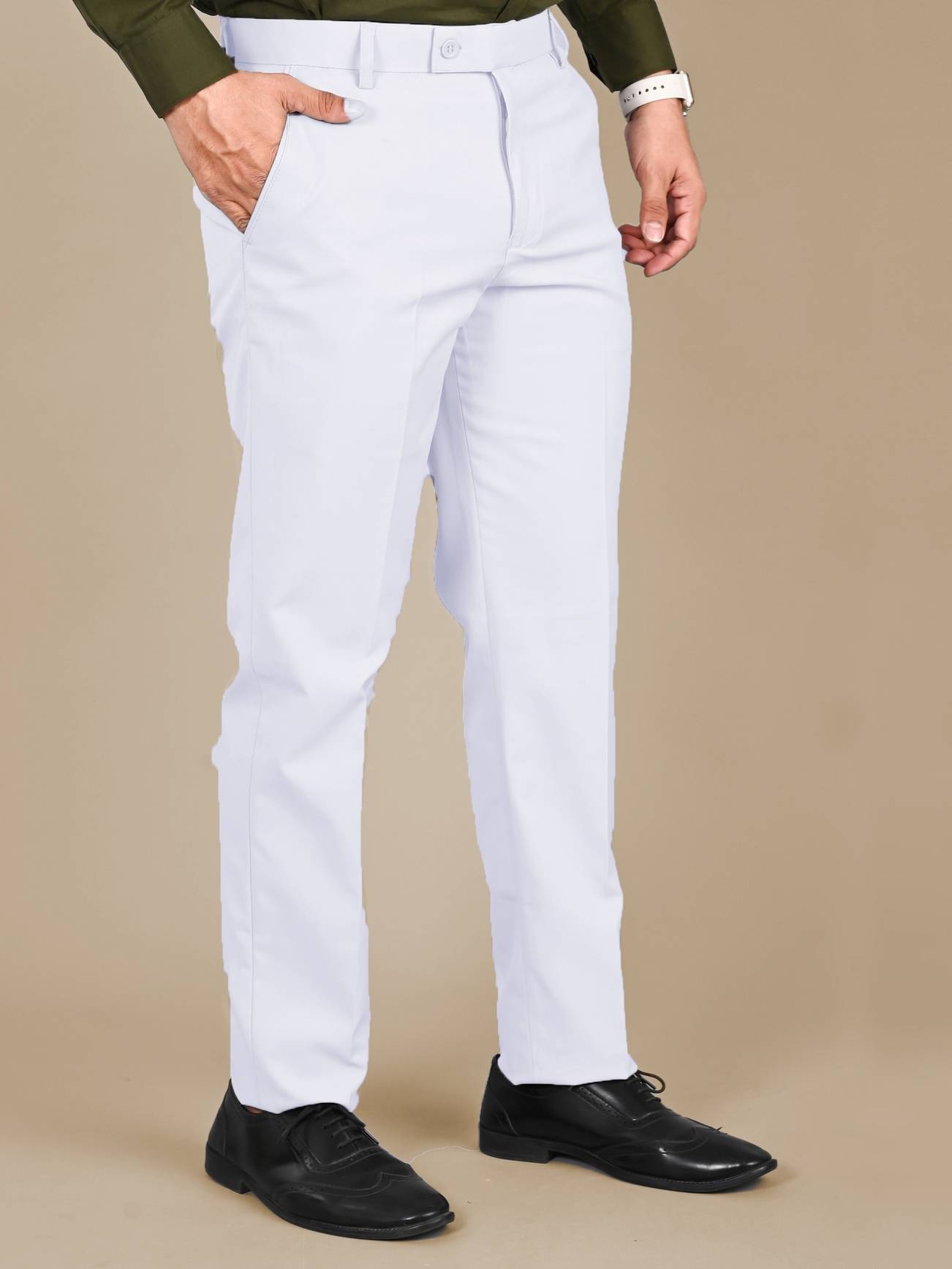 Upgrade your wardrobe with Mancrew Solid Regular Fit Formal Trousers, the perfect blend of comfort and style. These formal pants for men are crafted from premium fabric for a polished look, ideal for office wear or formal events. Designed to offer all-day comfort, these cotton pants for men feature a regular fit that complements every body type. A must-have in every modern man's closet!