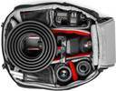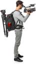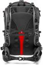 The front of the bag unzips to access the main compartment which has four padded pouches to store your gear in, as well as a large center section that features Manfrotto's Camera Protection System (CPS). The CPS dividers are movable, and are made from three layers to provide maximum protection: a brushed-fabric exterior, a shock-absorbing foam, and a structural reinforcement board. The CPS's design concentrates its protection in the center of the bag, where it is needed the most. A large padded pocket fits up to a 15.4" laptop, while numerous exterior pockets will hold small accessories such as memory cards and batteries. Adjustable EVA foam shoulder straps, a sternum strap, and a padded waist belt all provide added comfort when carrying heavy gear. An attachment and strap enables you to attach a tripod to the front of the bag, and a double-sided rain cover is included for protection in rain or sunshine. A detachable pocket and straps on the front of the bag can be used to hold a tripod or monopod. Flexi dividers have the option to fold out of the way when needed, or to be pulled out to protect your equipment. A rain protector is included to help keep your gear dry. One side of it is silver to deflect direct sunshine and help prevent your gear from overheating. A sleeve on the back of the pack slides over a trolley handle so you can pull the pack along with your luggage. A sternum strap and a waist belt provide additional support for heavy loads. The shoulder straps stow away into a compartment on the back of the bag for easier use with a trolley handle. A specially applied coating to the fabric keeps the bag resistant to moisture.