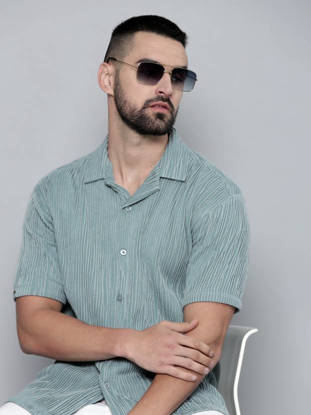 Men Boxy Fit Solid Spread Collar Casual Shirt