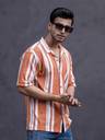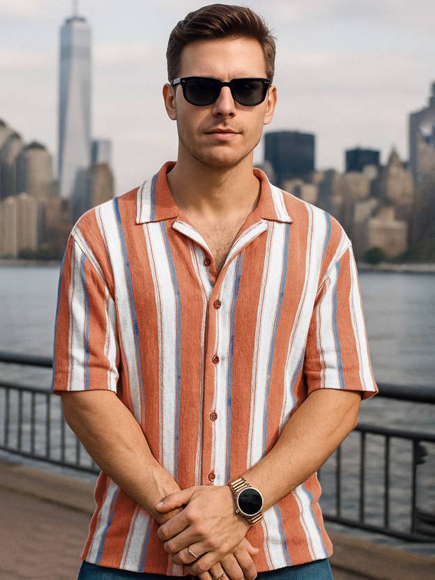 Men Boxy Fit Striped Button Down Collar Casual Shirt