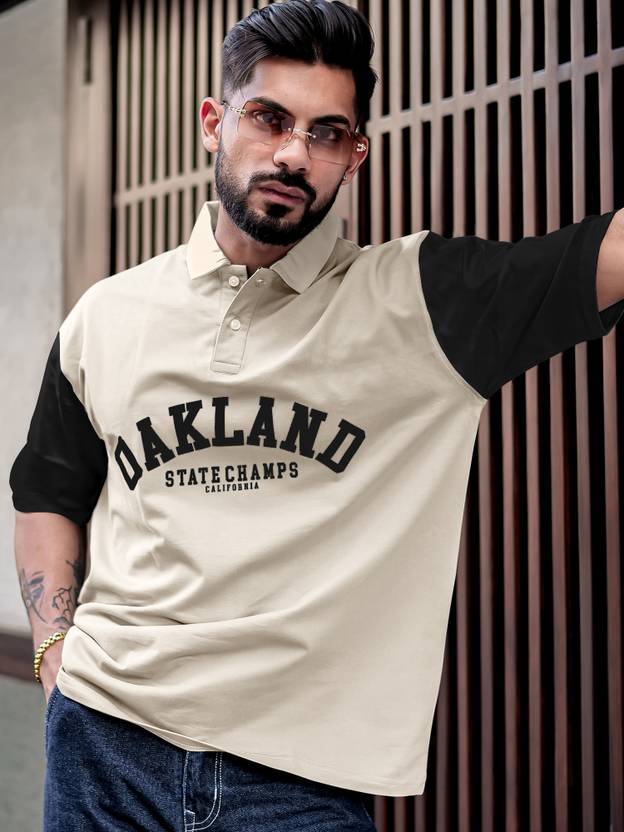 MANIAC Printed Men Polo Neck Beige T-Shirt