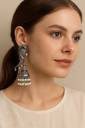 Add a traditional yet quirky touch to your ethnic look with these exquisite Oxidised Parrot Design Jhumka Earrings. Featuring intricately carved parrots and detailed jhumka domes, these earrings are adorned with hanging pearl beads for an elegant flair. Perfect for festive, wedding, and traditional functions, they make a bold and beautiful statement.