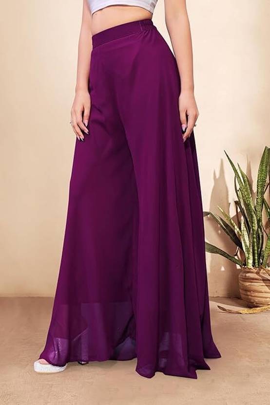 The unique feature about this pair of palazzo pants that makes it so very desirable is the appealing solid pattern and the color that adds a whole new dramatic effect to the piece. Manufactured from high quality material, this pair of palazzo pants is comfortable to wear all day long. Prepare yourself to look like a diva this season in this pair of comfortable palazzo.