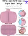 HIGH QUALITY MATERIAL: Every pill case is made from high quality cereal fiber and food grade pp material, BPA free, very sturdy and has better stability, more suitable for storing pills., MOISTURE PROOF & PROTECT PILLS: With the thickened silicone ring surrounded, can keeps your travel pill case closed tightly and prevent your pill from moisture and dust, so you can take fresh pills every day and say goodbye to damp pills., DOUBLE LOCK & REMOVABLE LIDS: Removable lids design is convenient for you to clean the pill case and refill the pills. Each compartment with inner lids and outer lock, effectively keeps the pills from falling out and getting mixed. The outer lock can closed tightly, no worry that the case will open in your purse., 8 COMPARTMENTS: The pill organizer has 8 compartments (6+2), 6 small compartments for little pills and 2 large compartments for large vitamins and capsules.