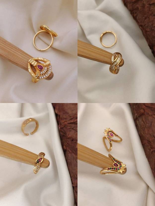 Gold-Plated Adjustable Stylish Rings for Women (Pack of 4)