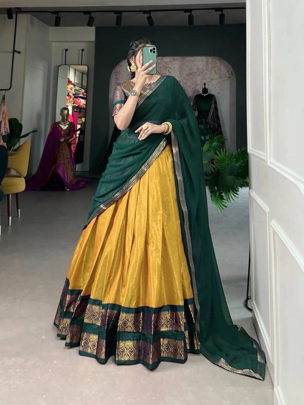 Printed Semi Stitched Lehenga Choli (Gold, Green)