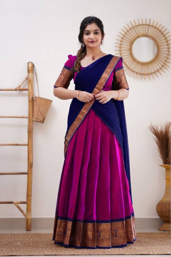 Unstitched lehenga choli , Heavy Kanchipuram South Indian Wedding Style Half Saree Lehenga Blouse & Dupatta, New Fancy Designer Traditional Lengha