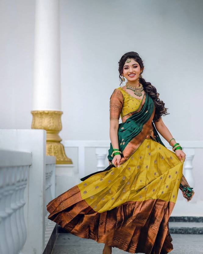 A traditional Indian three-piece outfit, the Lehenga Choli consists of a long, pleated skirt (lehenga), a fitted blouse (choli), and a scarf , often featuring intricate embroidery and embellishments, making it a popular choice for weddings and festive occasions.