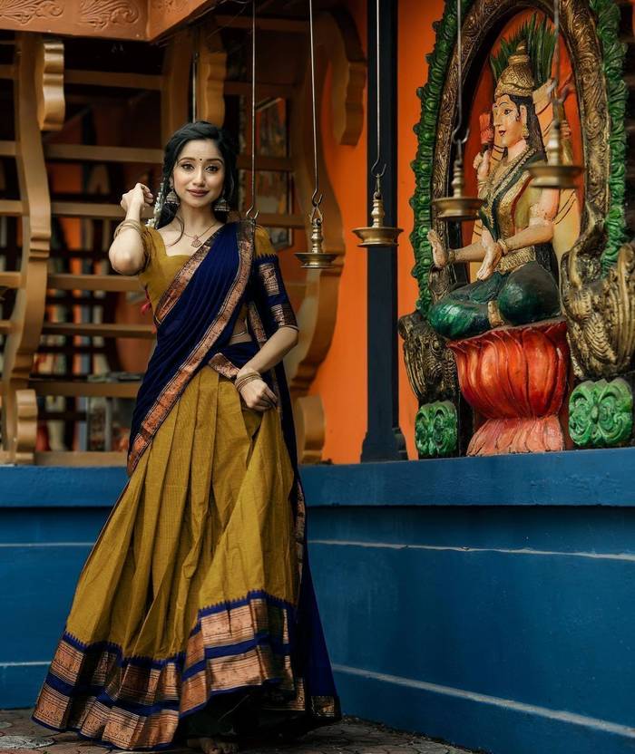 Solid Semi Stitched Lehenga Choli (Green, Blue)