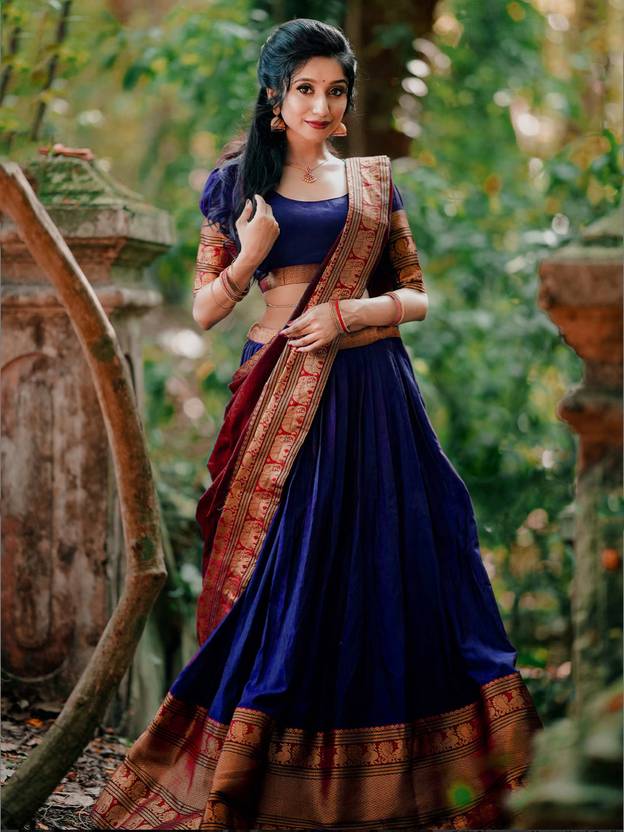 Unstitched lehenga choli , Heavy Kanchipuram South Indian Wedding Style Half Saree Lehenga Blouse & Dupatta, New Fancy Designer Traditional Lengha