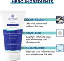 - pH Balance for Intimacy: Specially crafted for intimate areas, Mannlich anti-chafe cream is gentle for daily use, preserving pH balance to keep you feeling fresh and dry., Cream-to-Powder Comfort: Mannlich Anti Chafe Cream transforms from a creamy application to a silky ball powder, offering lasting freshness., Clean Ingredient Formula: Mannlich Anti Chafe Cream is free from aluminum, talc, gluten, and parabens. It combines unique ingredients for skin conditioning, reduced friction, and deodorizing., Stay Fresh Down Below: This cream is designed for use on your groin, including the balls, buttocks, and thighs. It dries into a talc-free powder, reducing sweat, odor, and chafing., Brighten and Heal: Enriched with Kojic Acid to lighten and Magnesium Ascorbyl Phosphate to stimulate collagen, it helps eliminate skin discoloration, heal chafed areas, and soothe rashes., Dermatologist Tested: Mannlich products undergo rigorous dermatological testing to ensure gentle and effective intimate hygiene solutions.