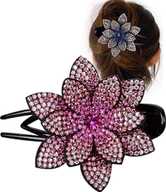 Rhinestone Flower Bun Clip Flower Duck Claw, Multicolor