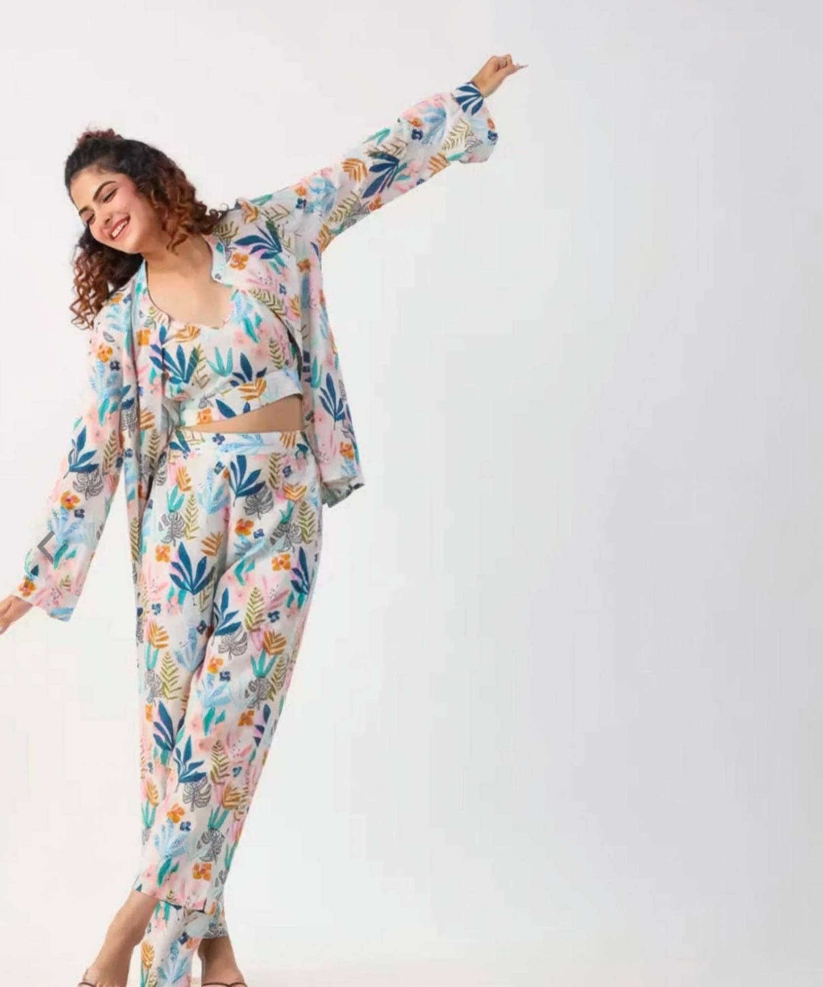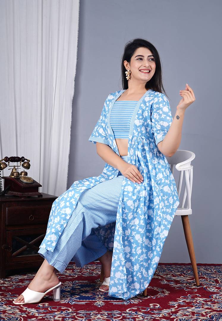 MANOJAVA Women Crop Top Palazzo Ethnic Jacket Set