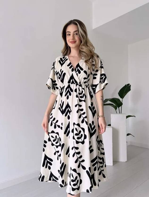 MANOJAVA Women Fit and Flare Black Below Knee Dress