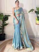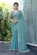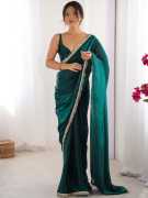 Embroidered Bollywood Satin Saree (Green)