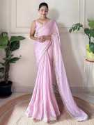 Manokamna Embroidered Bollywood Satin Saree (Green)